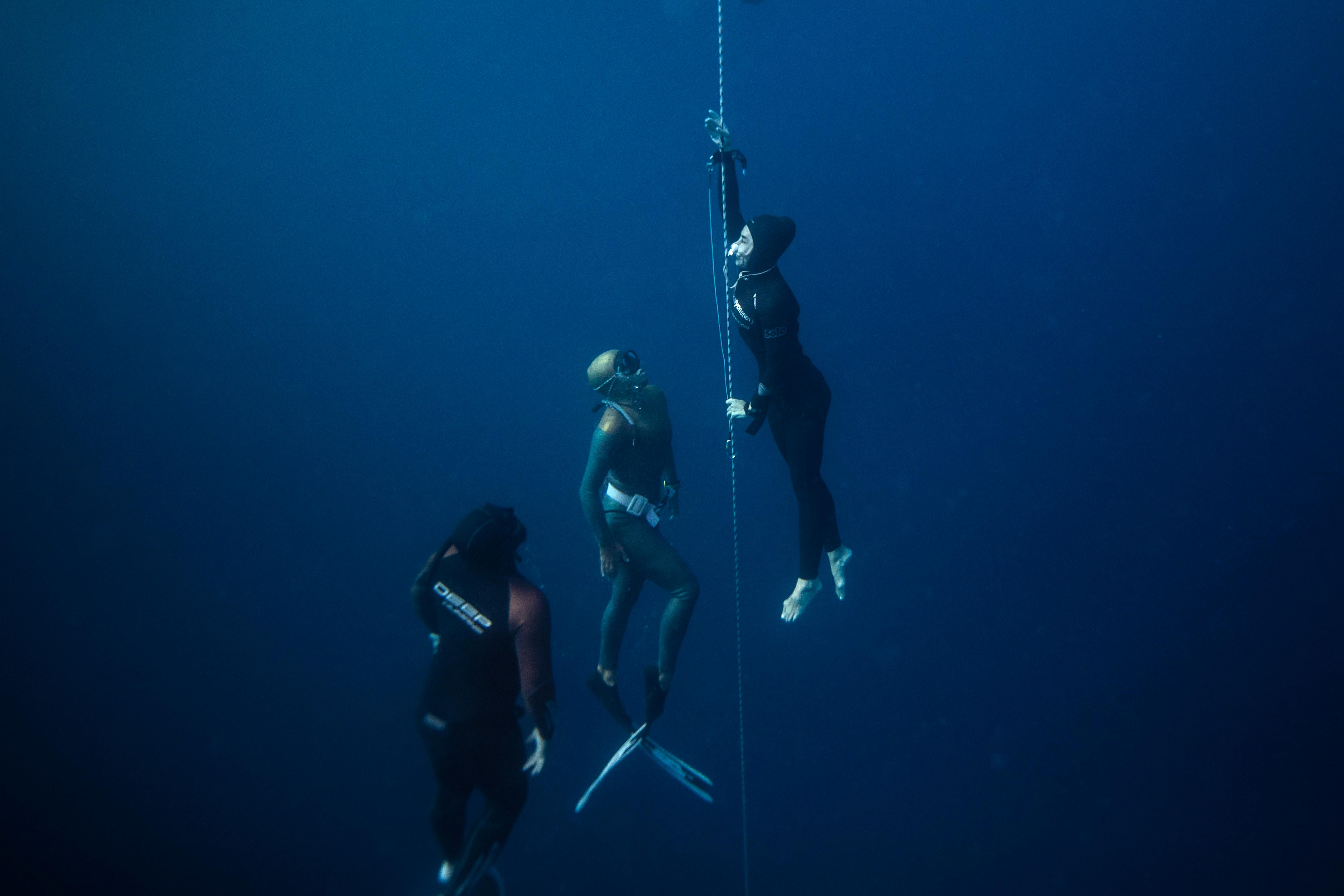 Tüplü dalış gibi değil herkes onu soruyor. “O kadar derine dalınca vurgun yemiyor musun?” diyor. Hayır. Bizim branşta olabilecek tehlikeli şey, yukarıya çıkarken artık çok oksijen harcadığınız için minik bir baygınlık geçirebilirsiniz. Bunu risk faktörü olarak görüyoruz. Bunun için güvenlik önlemlerimiz var. Sığ su bayılması, ‘blackout’ riski var. Yani çok uzun süre nefes tuttuğunuzda, o derinliklere indiğinizde limitlerini biraz aştığınızda o limitlerde çok üst düzey bir şey yapıyorsanız başına gelebilecek bir şey aslında. Bunun da tabii önlemi güvenlik dalgıçları bulundurmak.